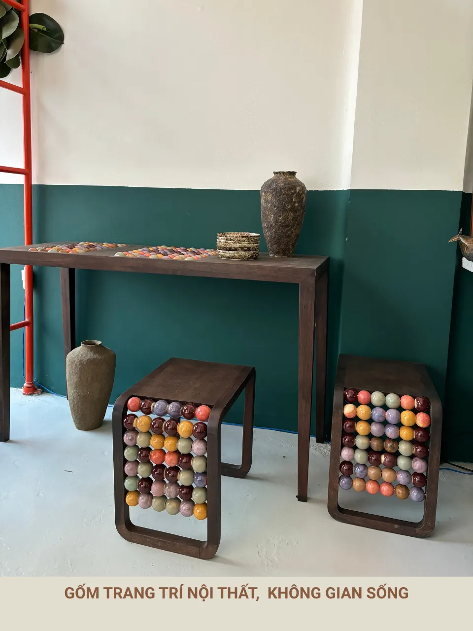 Gạch gốm không chỉ để ốp lát, mà còn có thể trở thành nút áo, tranh gốm, vật phẩm trang trí và những trải nghiệm sống động trong không gian.